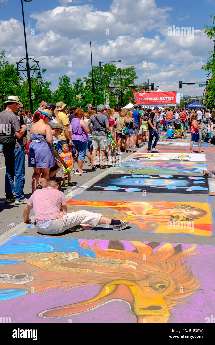 Denver Colorado 1 June Artists Put The Finishing Touches On Their Chalk Murals Along Larimer And 14th Street In Downtown Denver On The Second Day Of The 2014 Denver Chalk Art